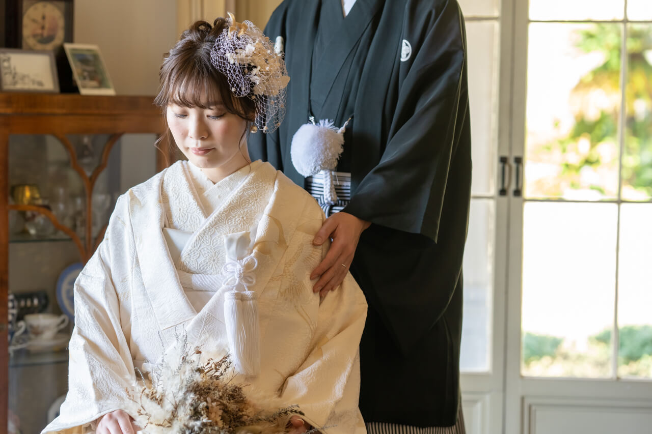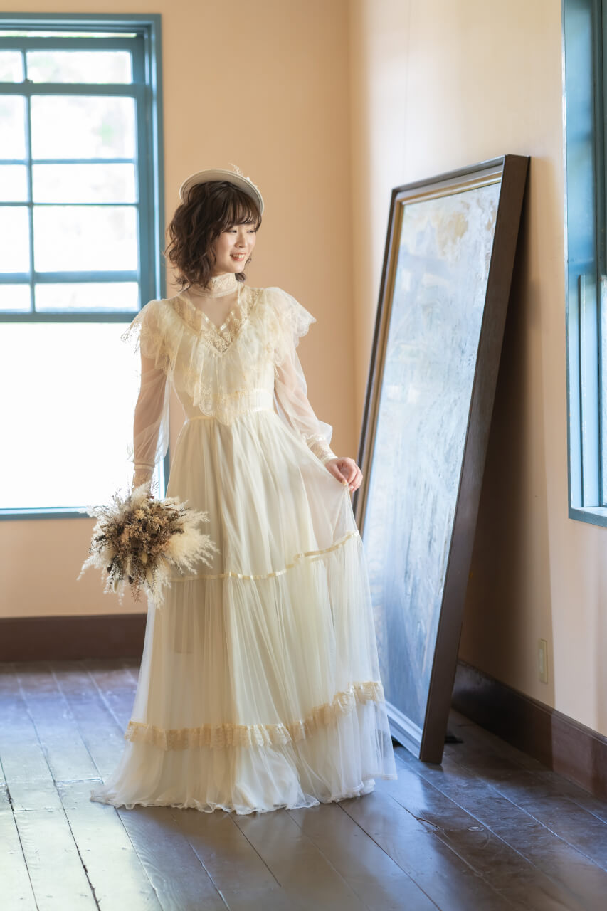 和装:ventcouleur ドレス:nina mariage(vintage02 ヴィクトリア) 撮影:photo serendipity 着付:佐和着物教室 ヘアメイク:Kumiko Hiramatsu