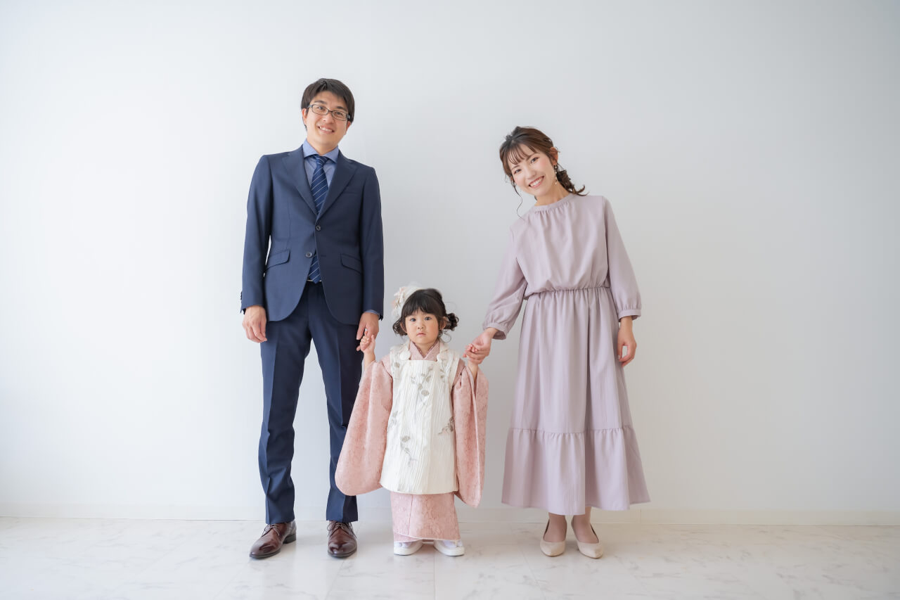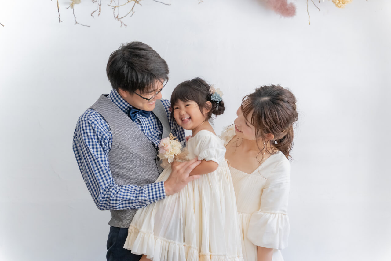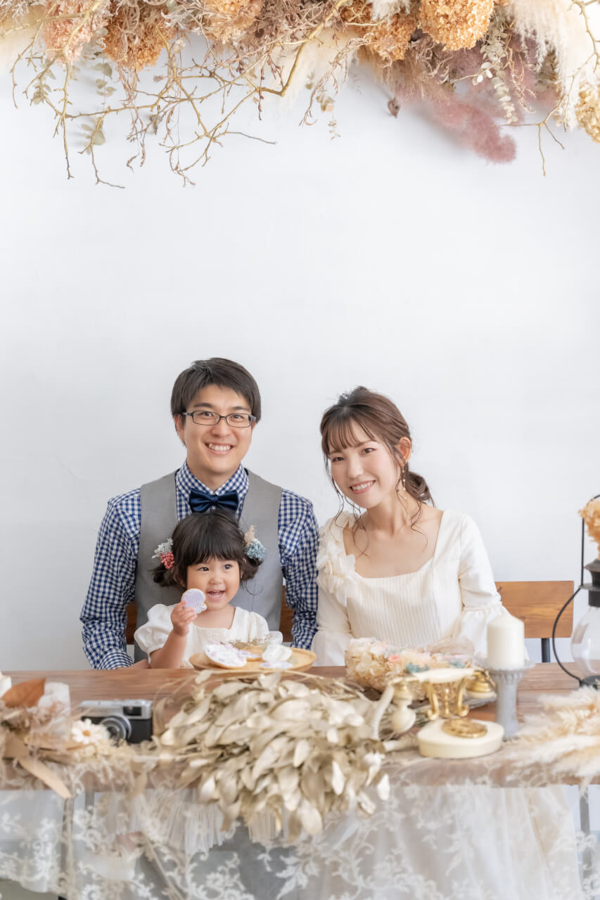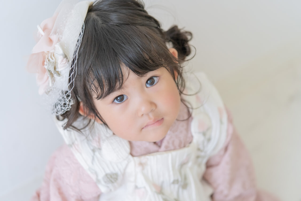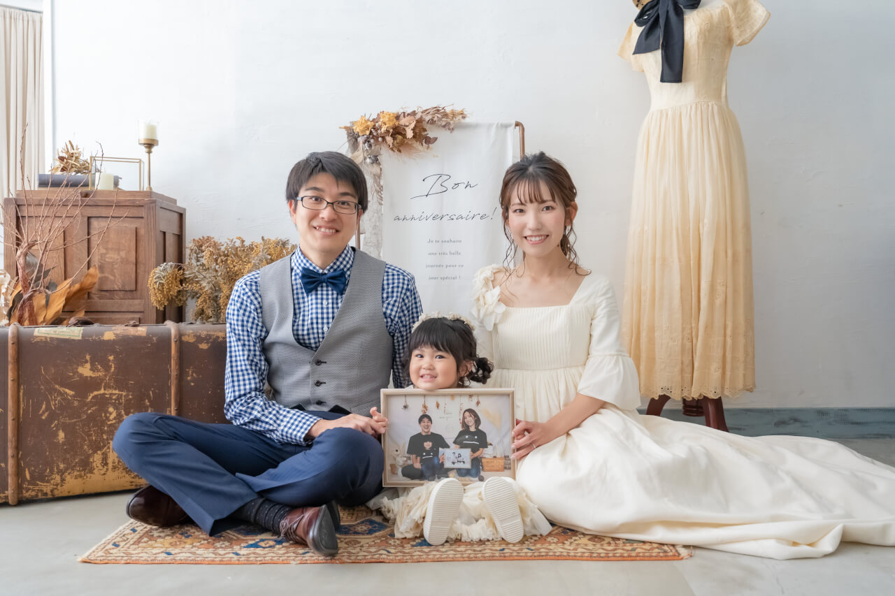 3歳キモノ:atelier hanamichi キッズドレス:Rosey Aphrodina ママドレス:nina mariage 撮影:photo serendipity ヘアメイク:Kumiko Hiramatsu