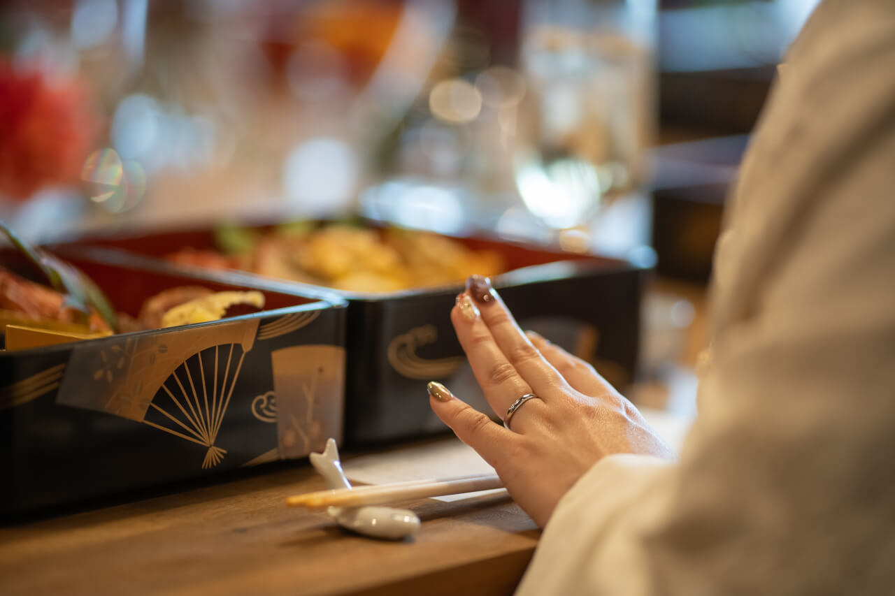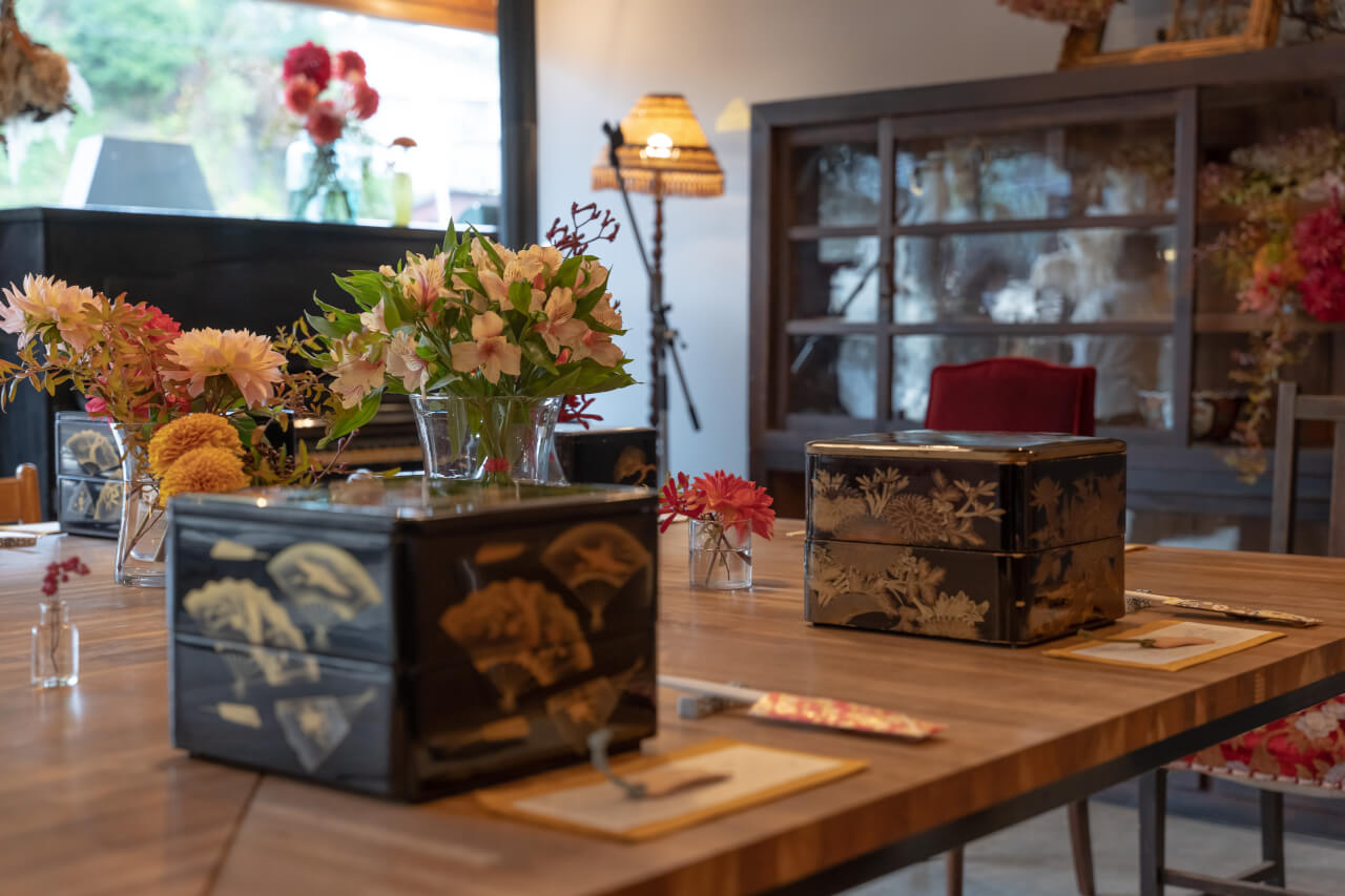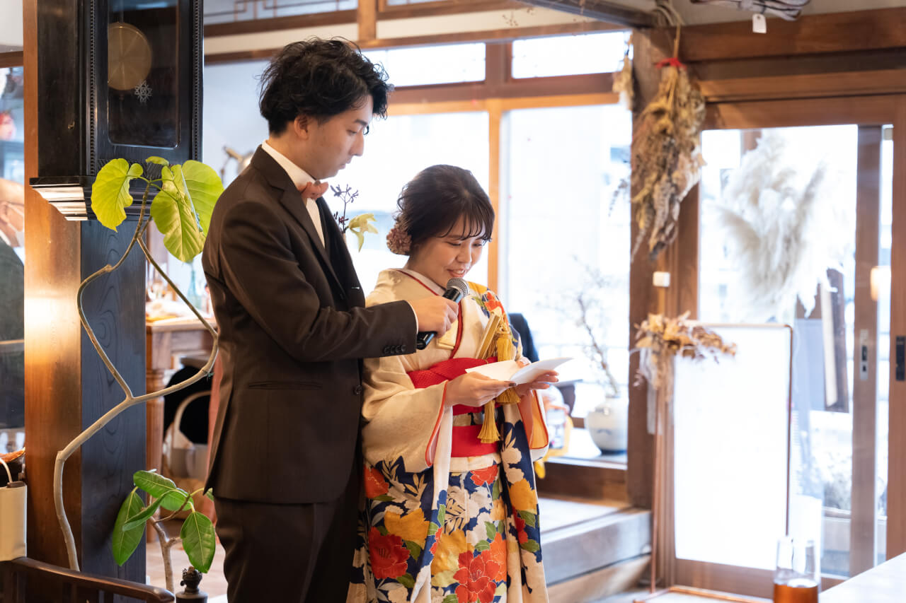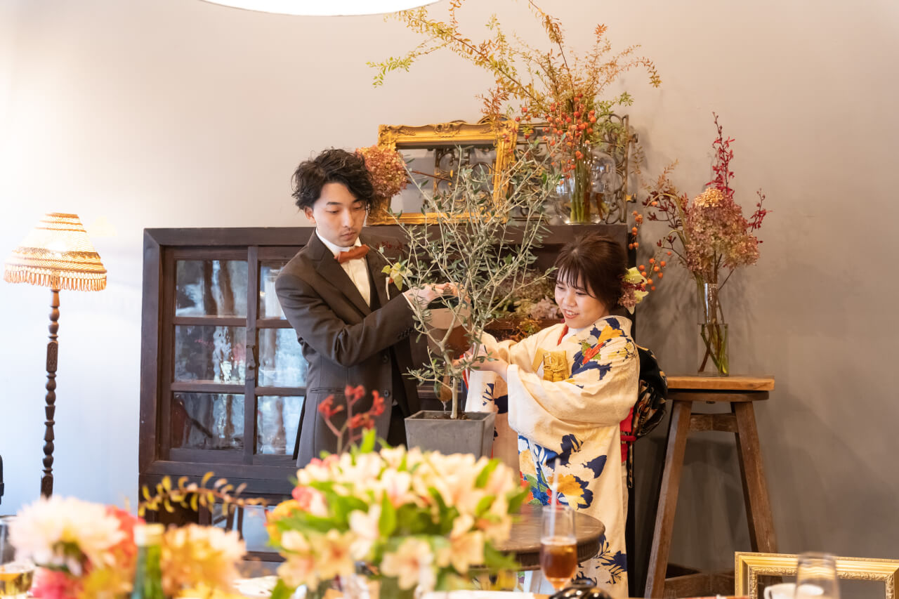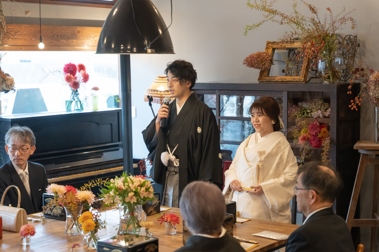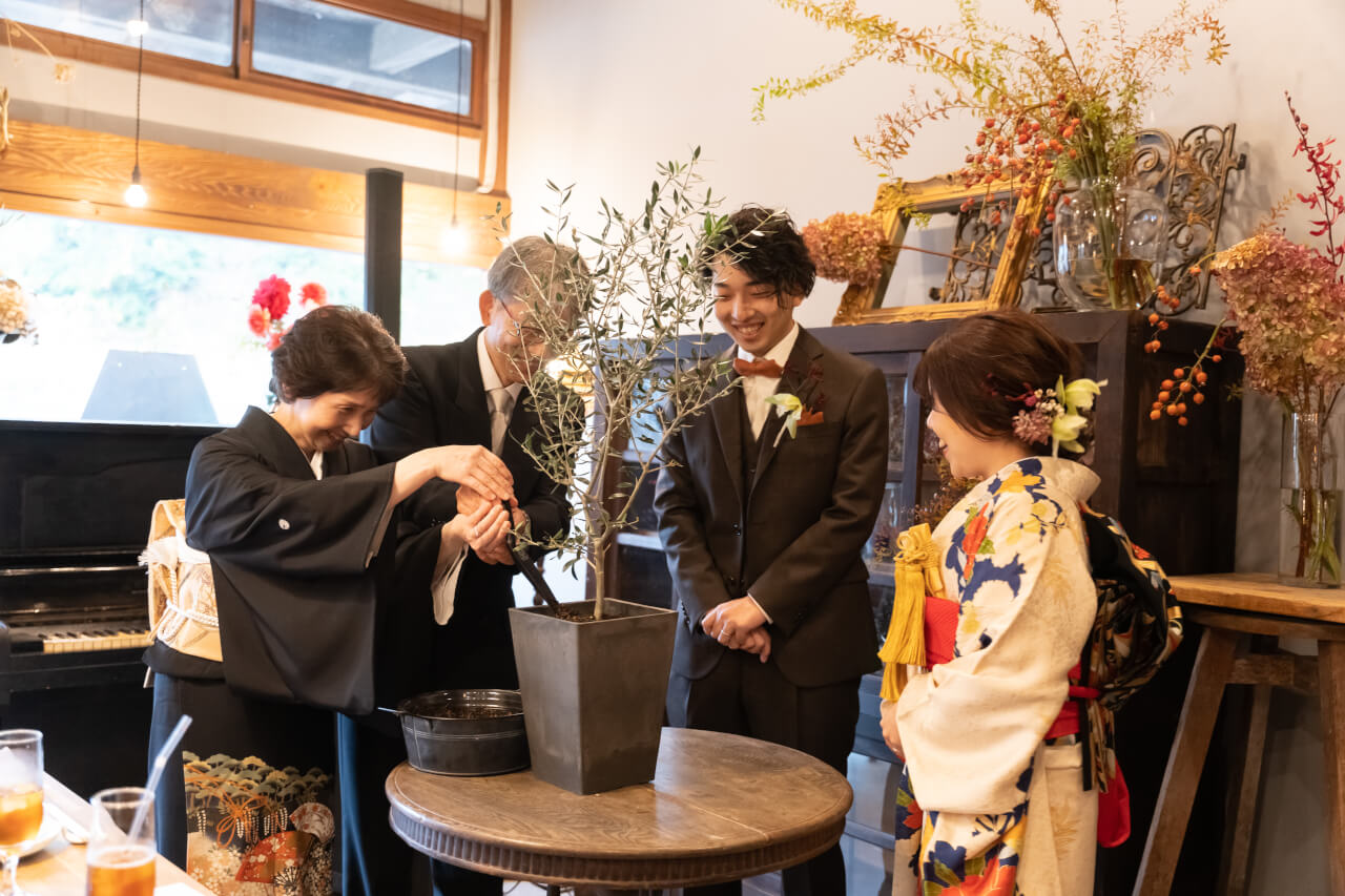 1週目は、ご家族ご親族に囲まれて、古民家カフェで本格派のお重料理を楽しんだ和の結婚式。