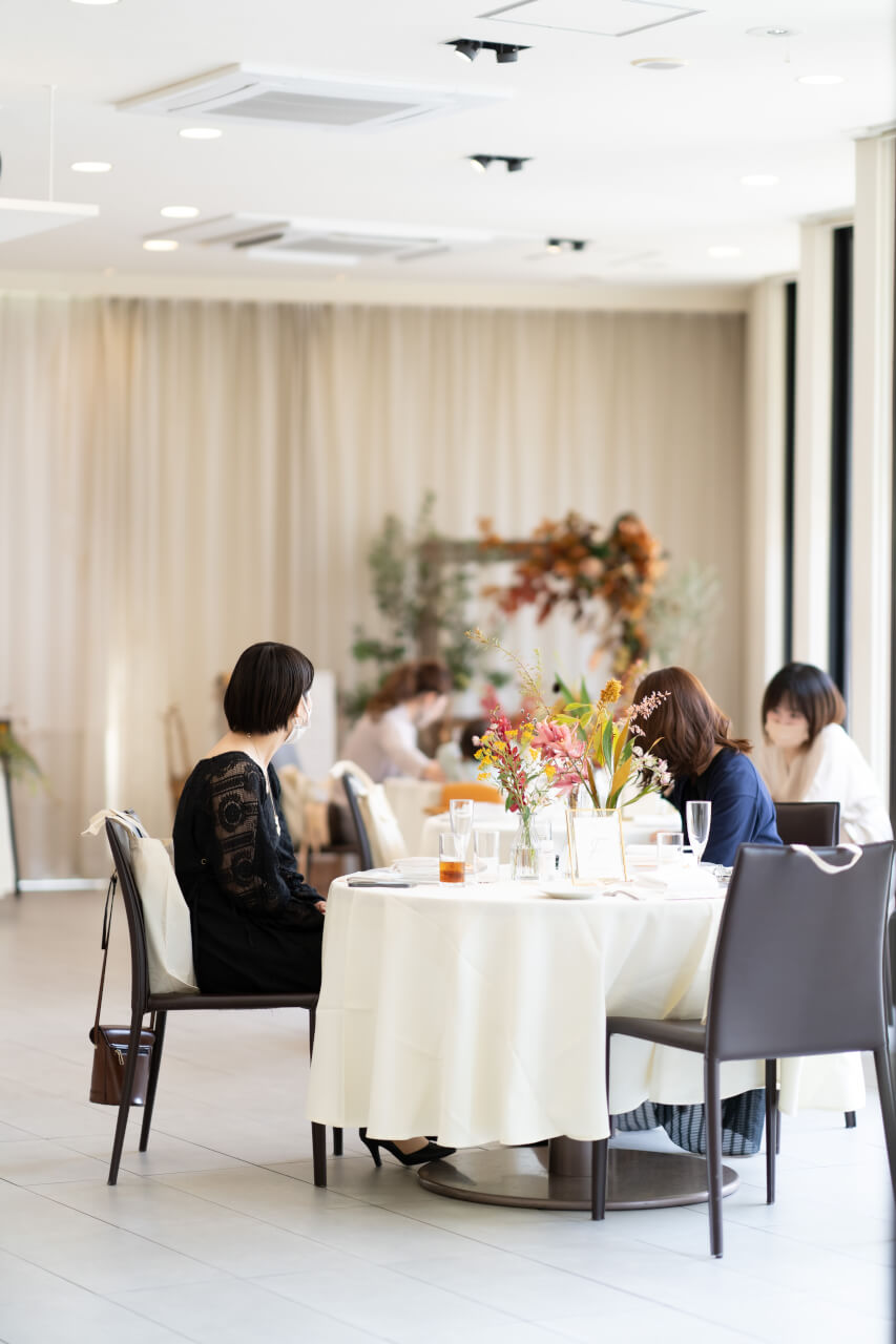 2週目は、ご友人に囲まれて、洗練されたレストランで食事と会話を楽しむウェディング。