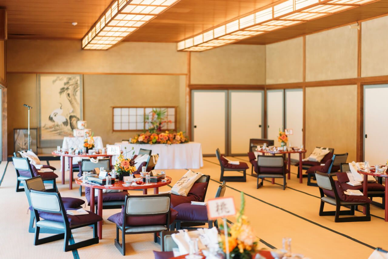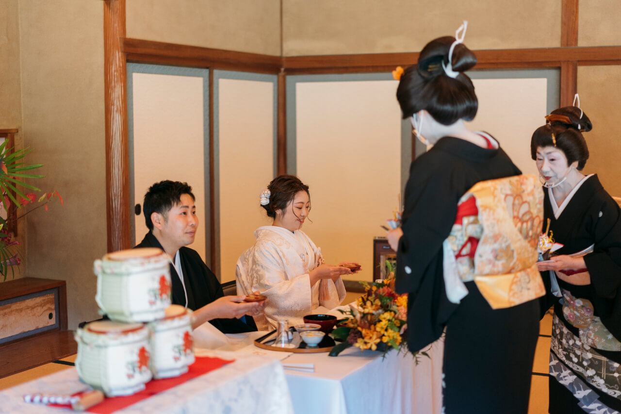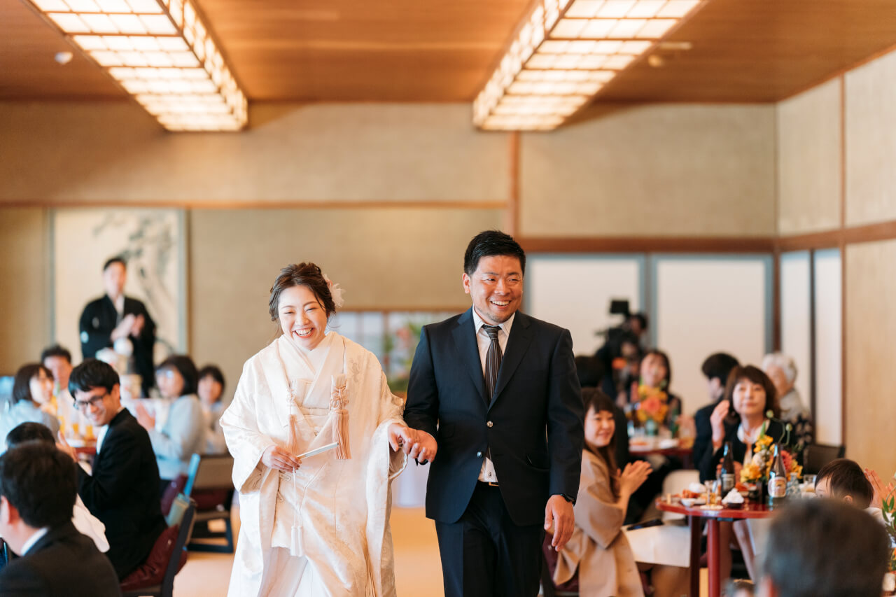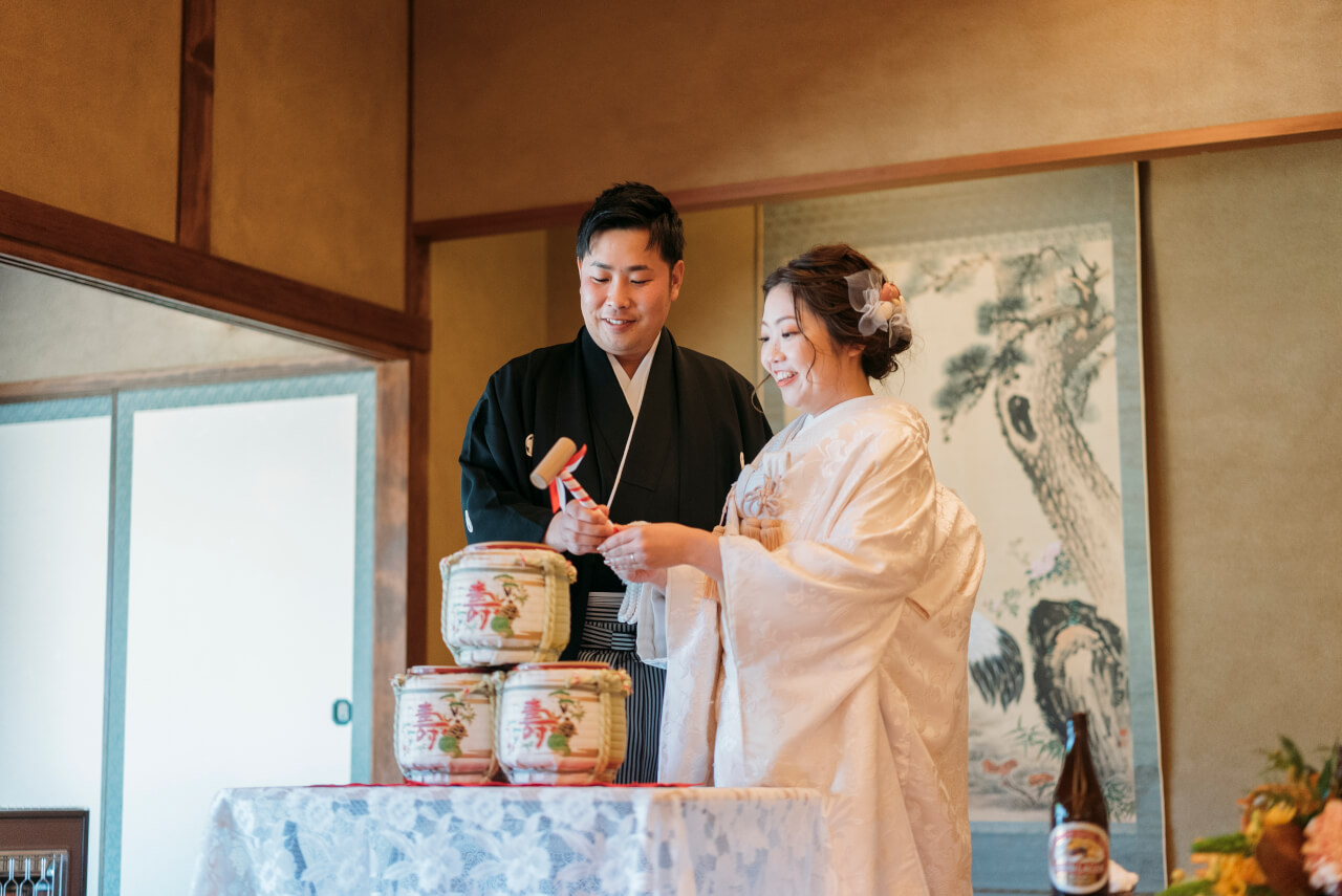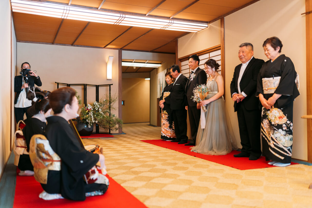 長崎検番さんのお座敷遊びに始まり、祝い樽での鏡開きなどを取り入れた、和の伝統をたいせつにした披露宴。
