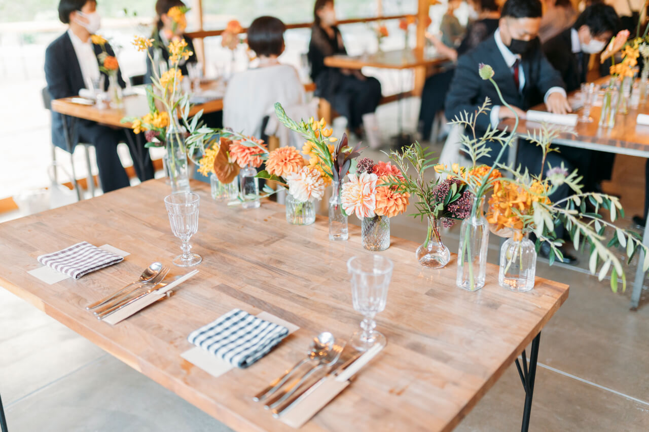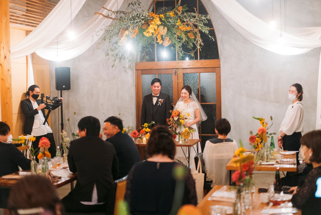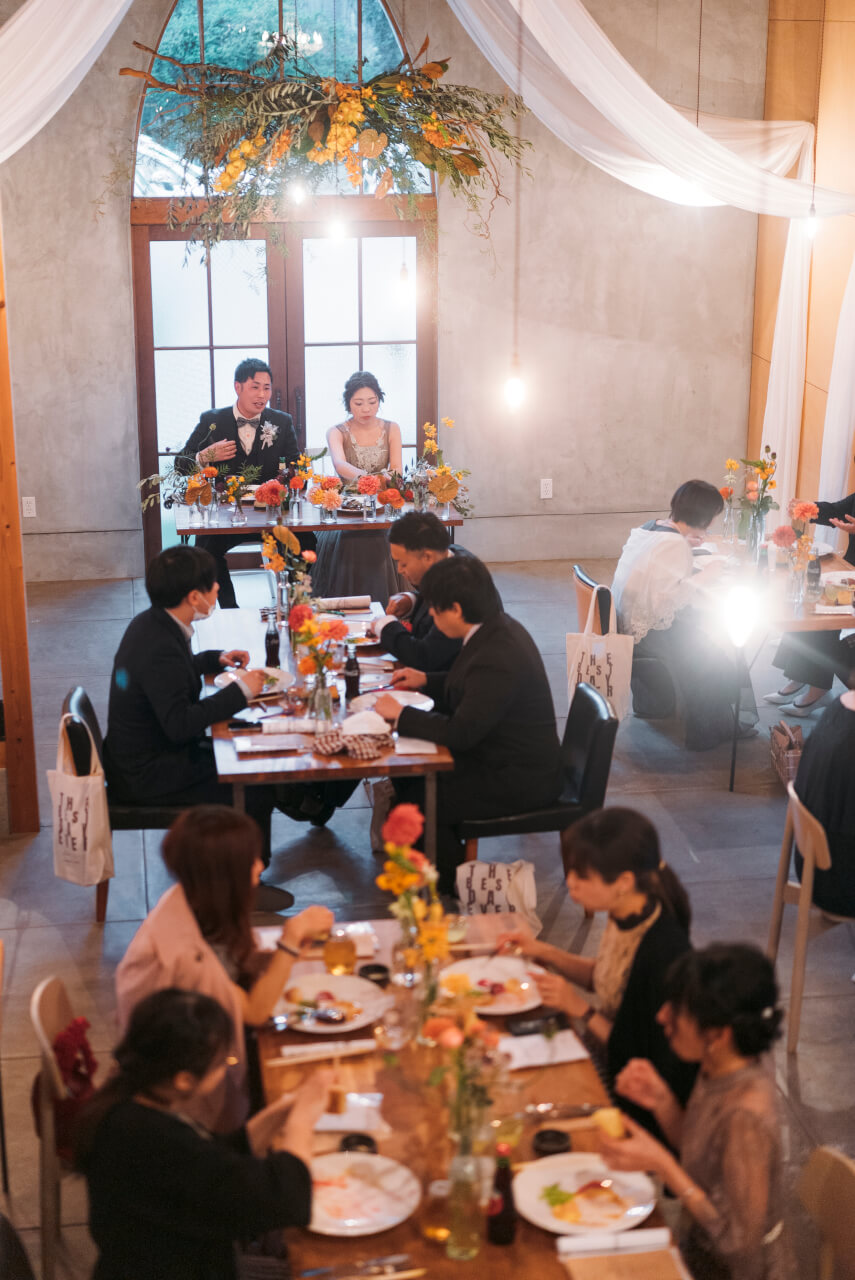 あまり言葉で表現することが得意ではない二人だからこそ、家族は家族、ご友人はご友人それぞれと過ごす時間を大切に考えてこのスタイルを選びました。