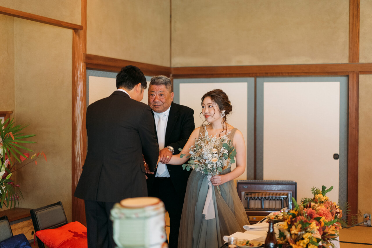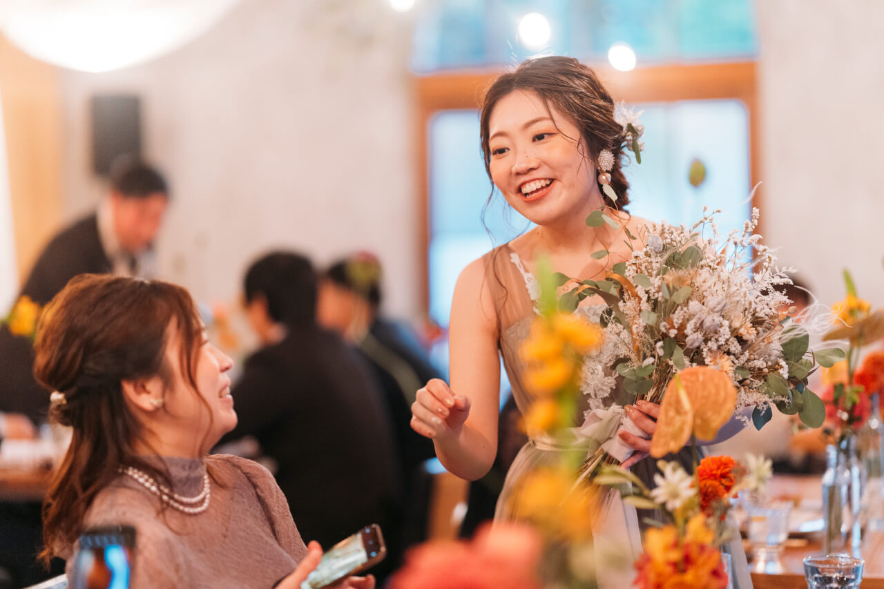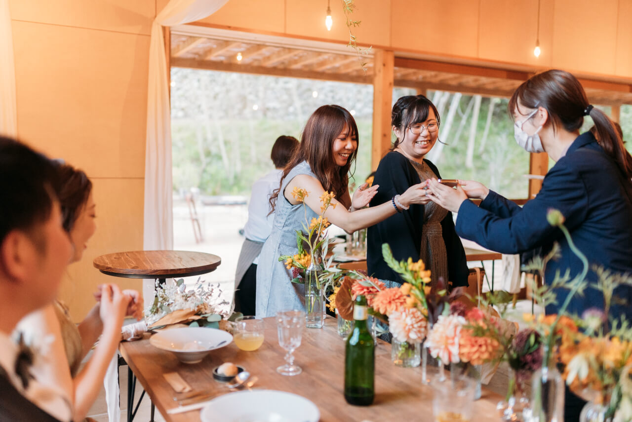 あまり言葉で表現することが得意ではない二人だからこそ、家族は家族、ご友人はご友人それぞれと過ごす時間を大切に考えてこのスタイルを選びました。