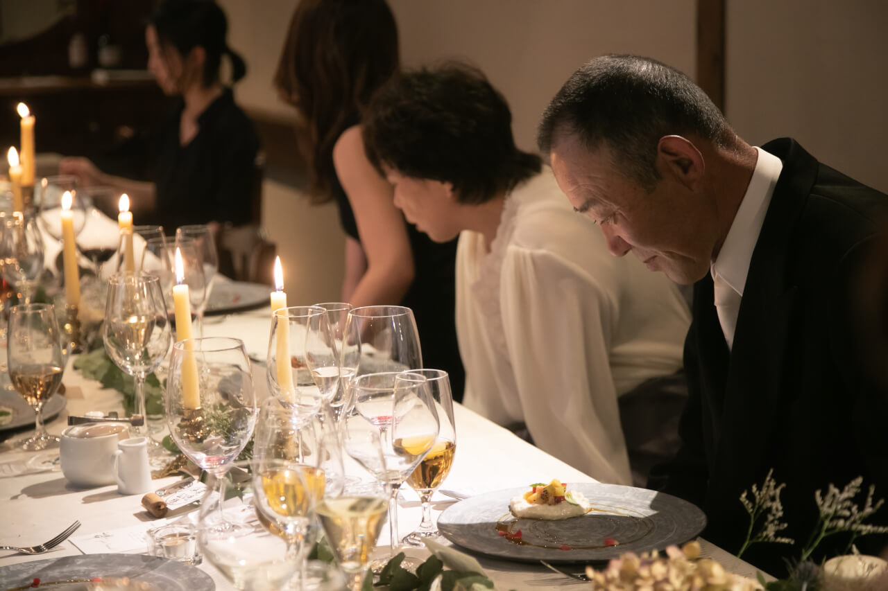 言葉にするのが苦手な新郎さまが、ご家族に感謝を伝えるために、ご実家で採れたじゃがいもやお米を使った最高のフレンチ。
