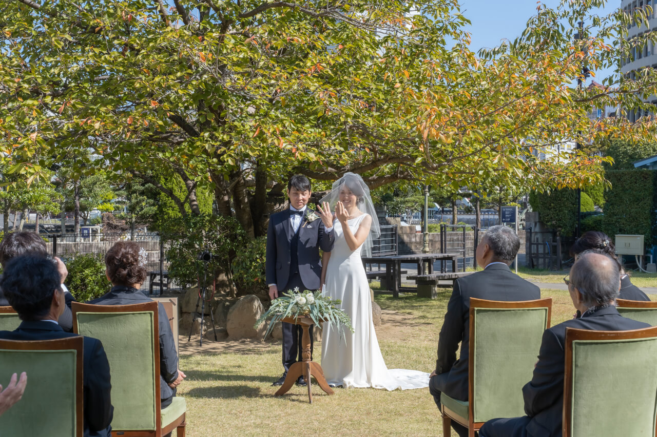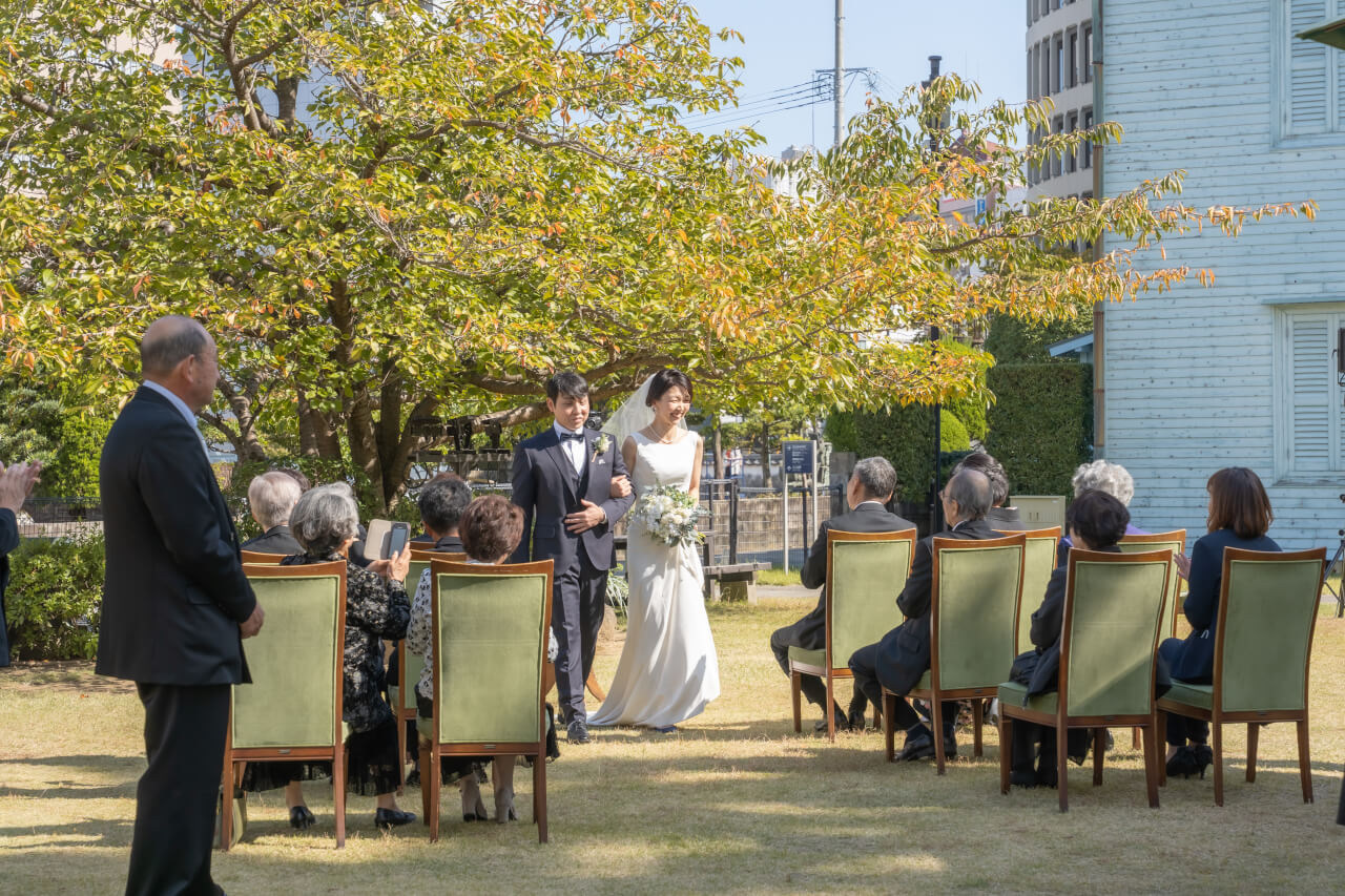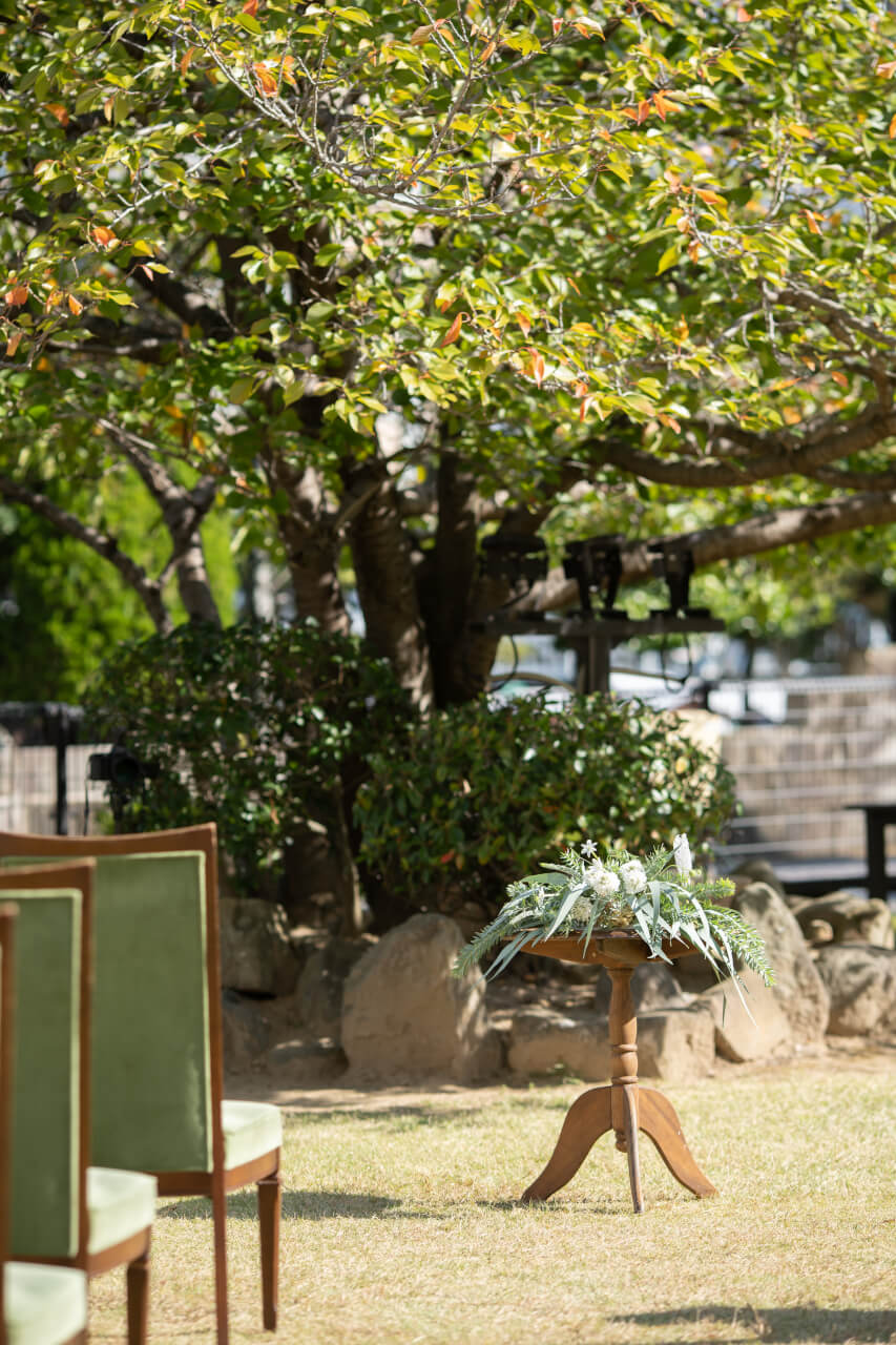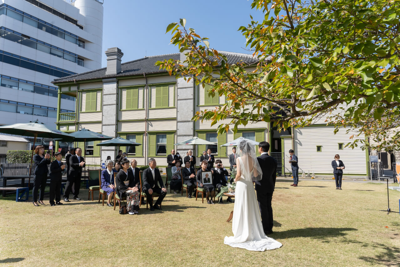 出島の方のご厚意で オープンエアーとなるガーデン挙式も叶いました。