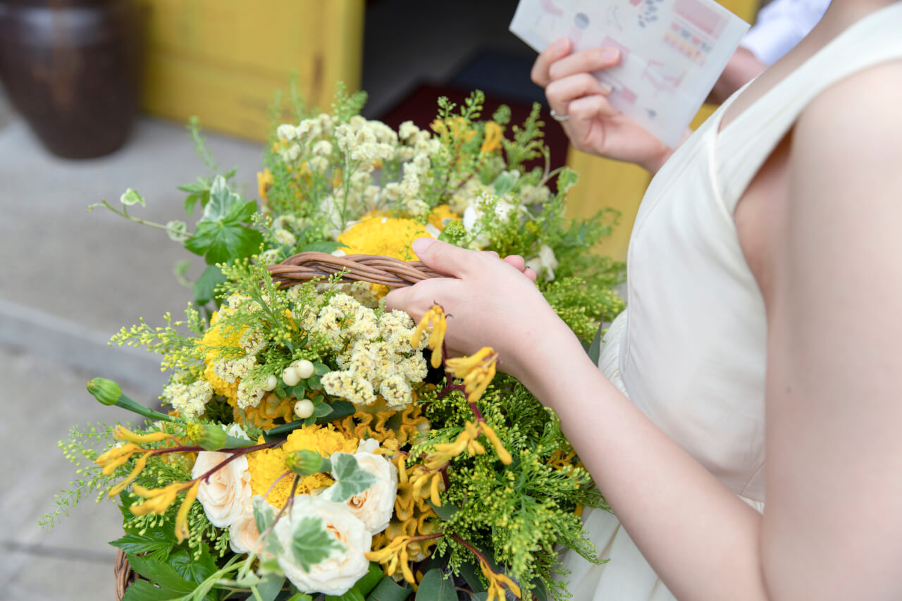花嫁さまが好きな映画監督「ウェス・アンダーソン」の世界観を表現したいね、とアイディアを出し合いました。