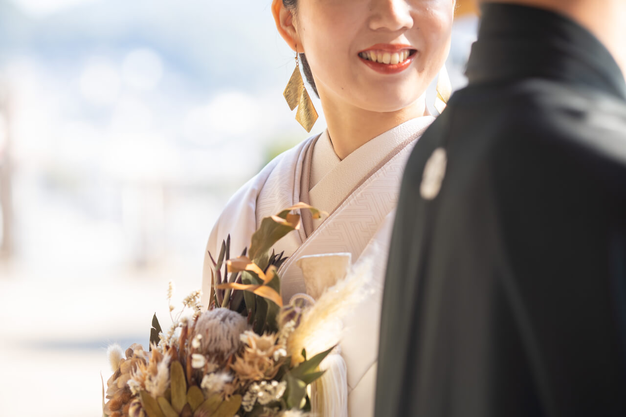 和装:ventcouleur ドレス:nina mariage(basic09) 撮影:photo serendipity 着付け:佐和着物教室 ヘアメイク:Kumiko Hiramatsu