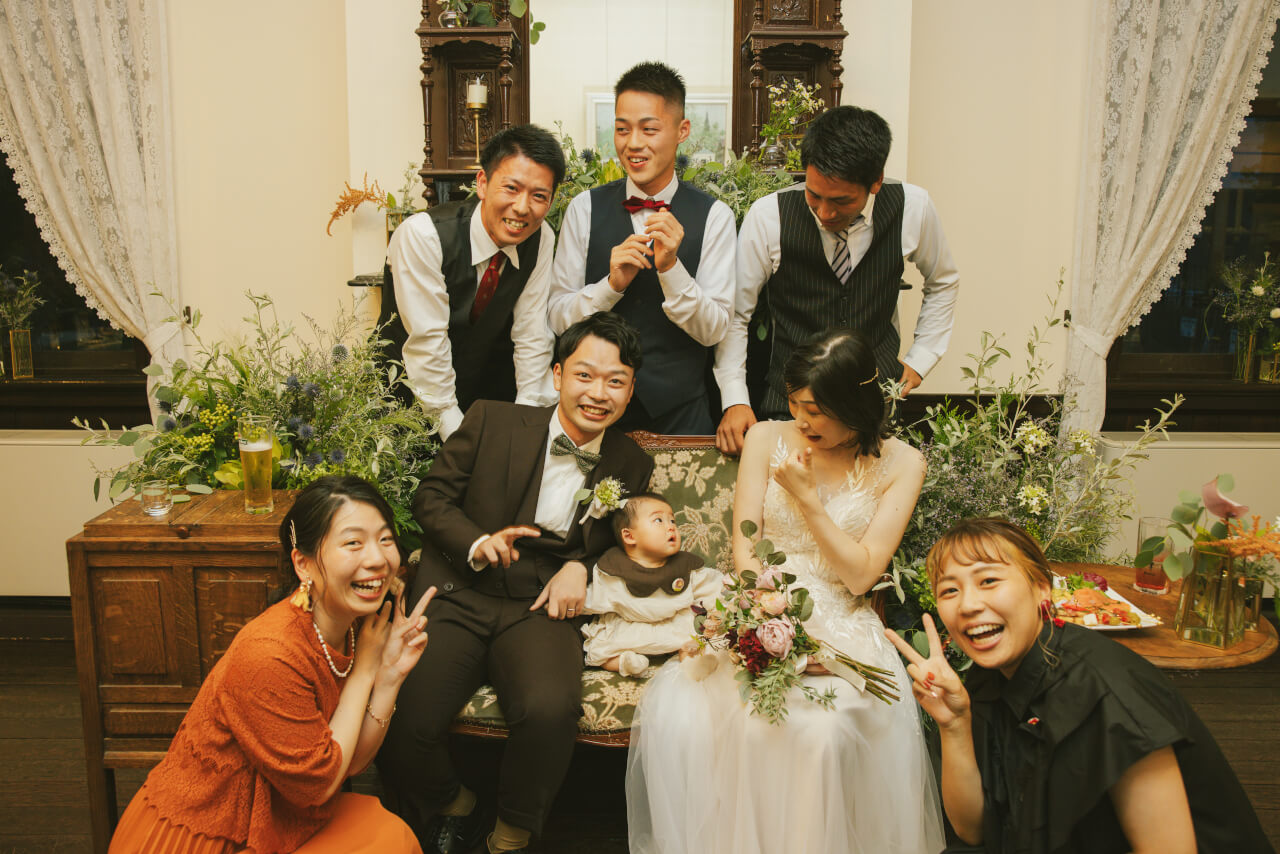 2部のご友人との披露宴では、大口を開けて爆笑したりふざける姿を微笑ましく見守りました。