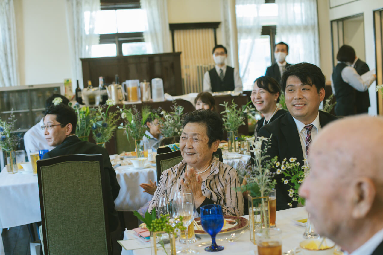 1部のご親族との披露宴では くしゃっと笑う笑顔がどこか幼く