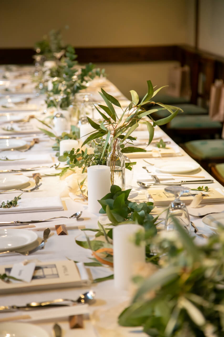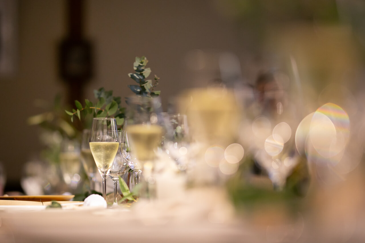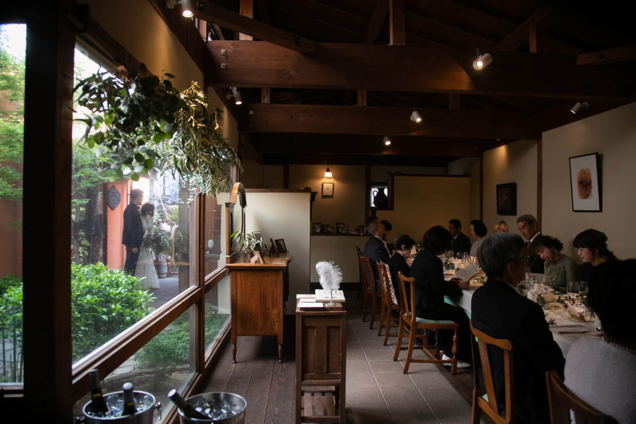 おいしいお料理で会話もはずみ、1つのテーブルを囲んでご両家でにぎやかに過ごした、ご家族だけの小さな結婚式。
