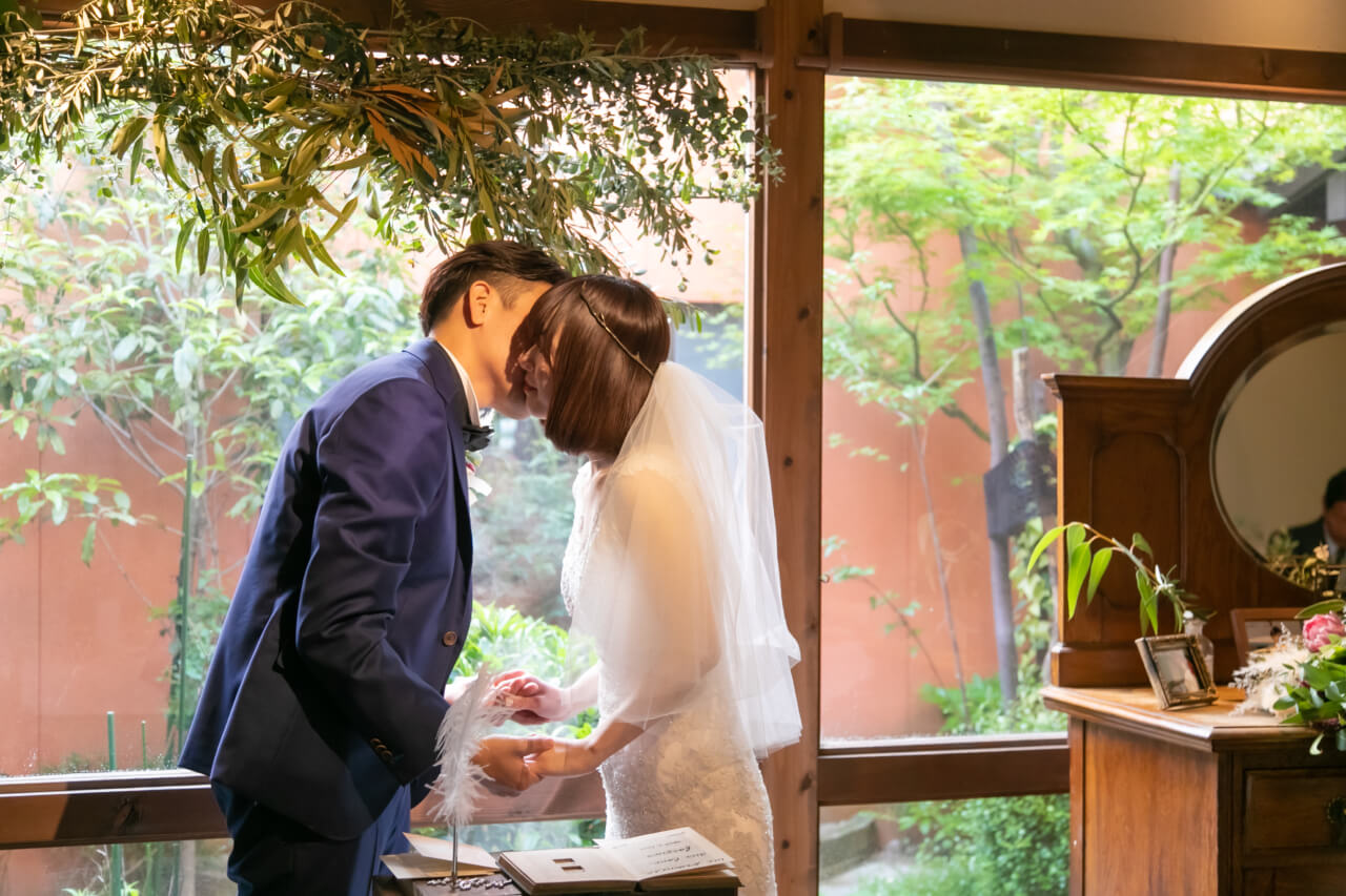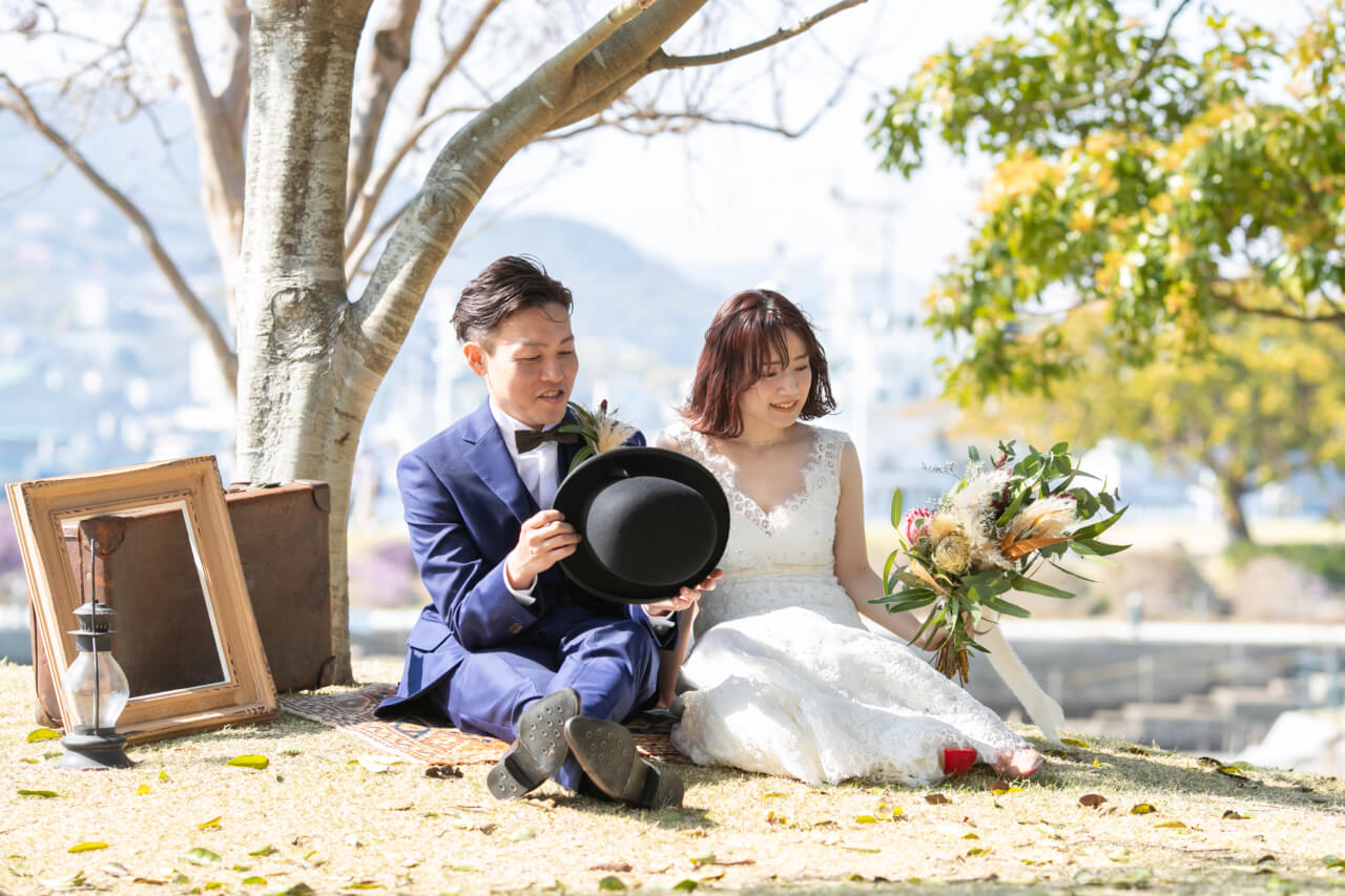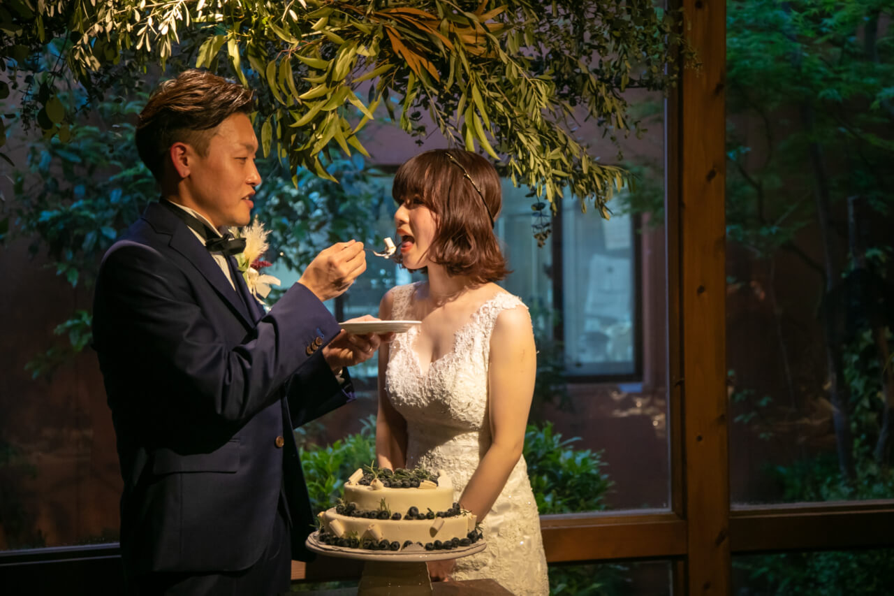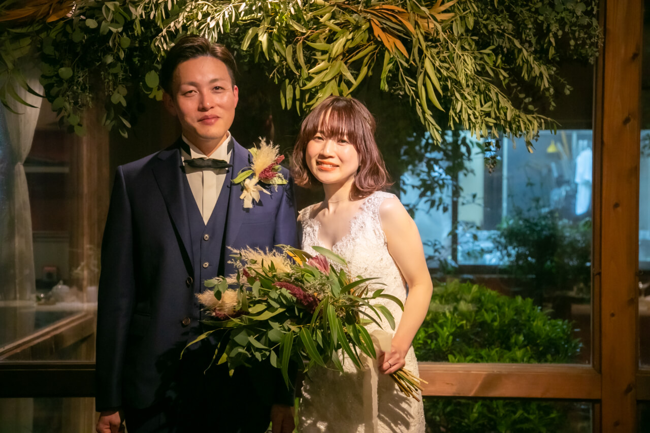 物静かで穏やかな新郎さまと、キュートで天真爛漫な笑顔がかわいい新婦さま。
