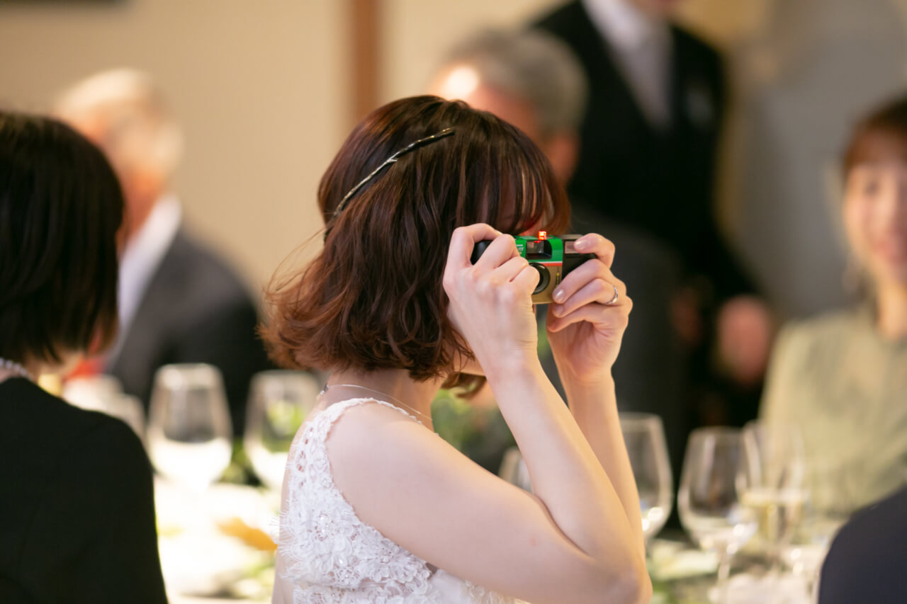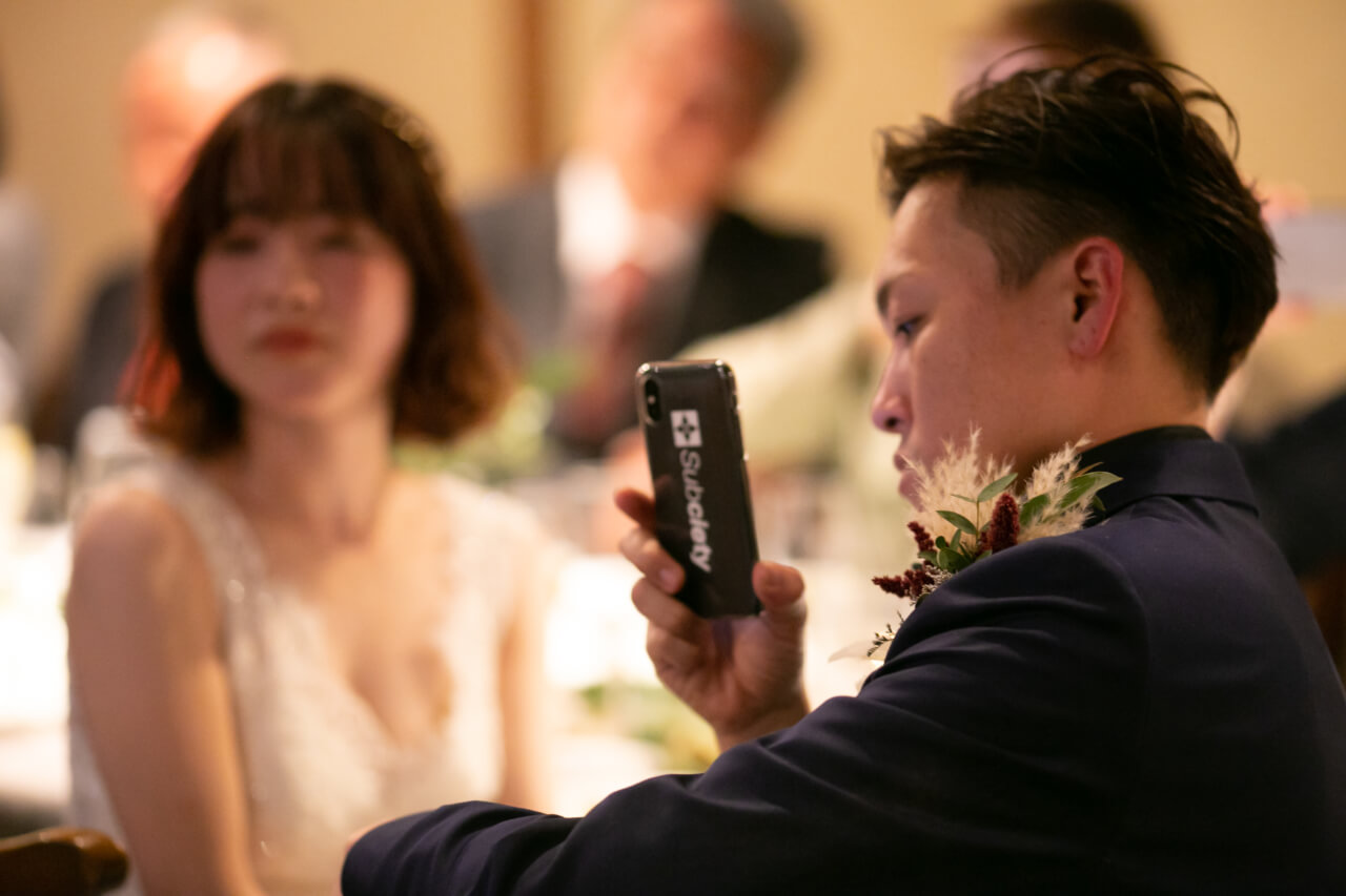 新郎さまから新婦さまへ「誓いの言葉」が便箋一杯に書かれていたり、姪っ子さんの余興ではずっと動画を撮っていたり、披露宴を通して「言葉数は少ないけれどとっても愛情深い人なんだ」と改めて感じました。