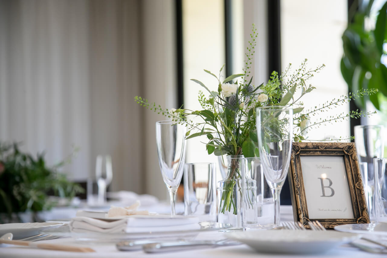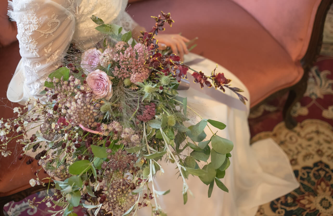 長崎の部は、洋館レストランを舞台に、秋を先取りしたシックな装花でクラシカルなパーティー。