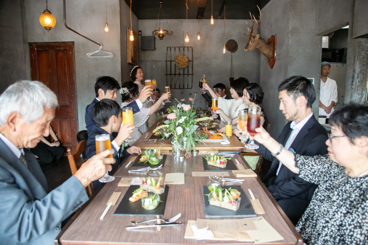 レストランウェディングに馴染みがないご家族やゲストの皆さまのために、悩んで悩んで、ときどき心配になるほど一生懸命に考え抜いたふたり。