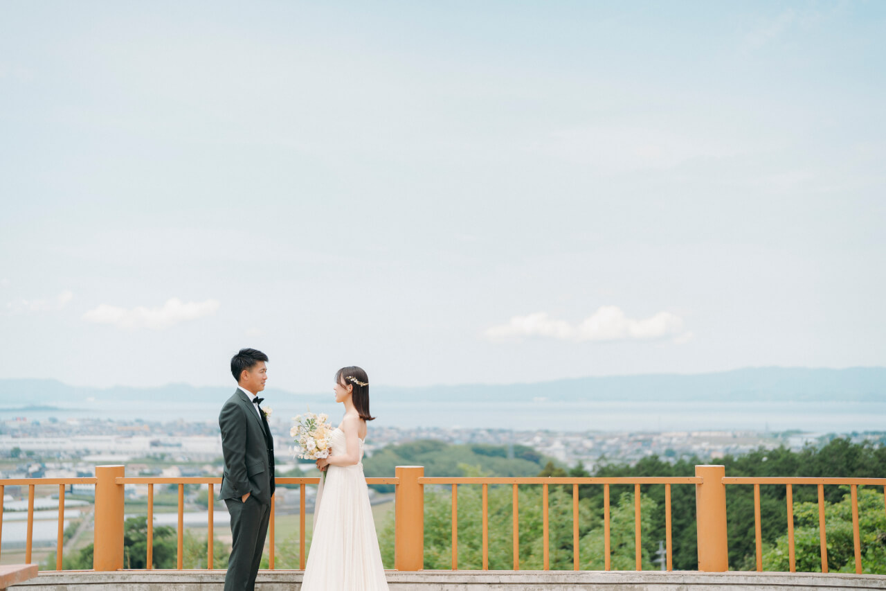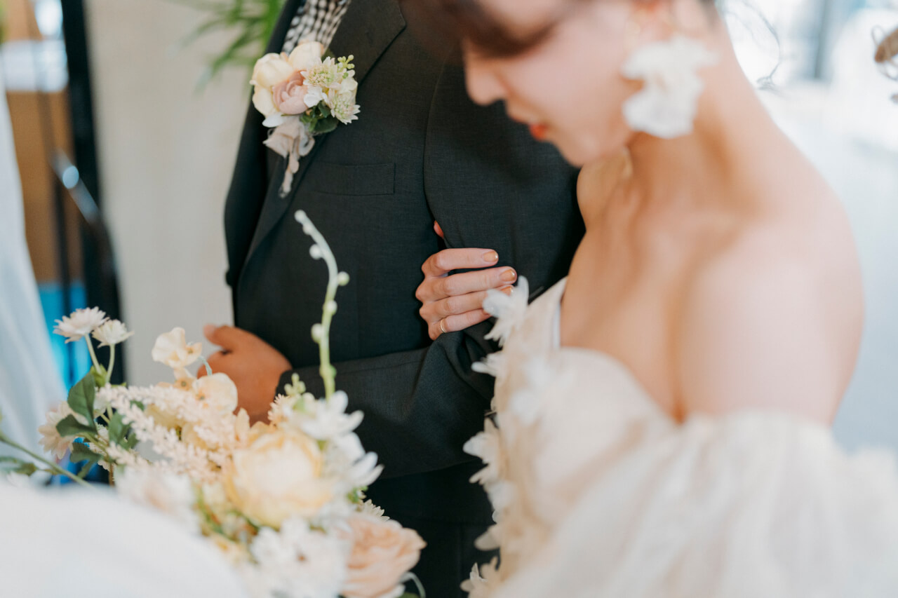 軽やかな花嫁さんとシャイで寡黙な新郎さん。